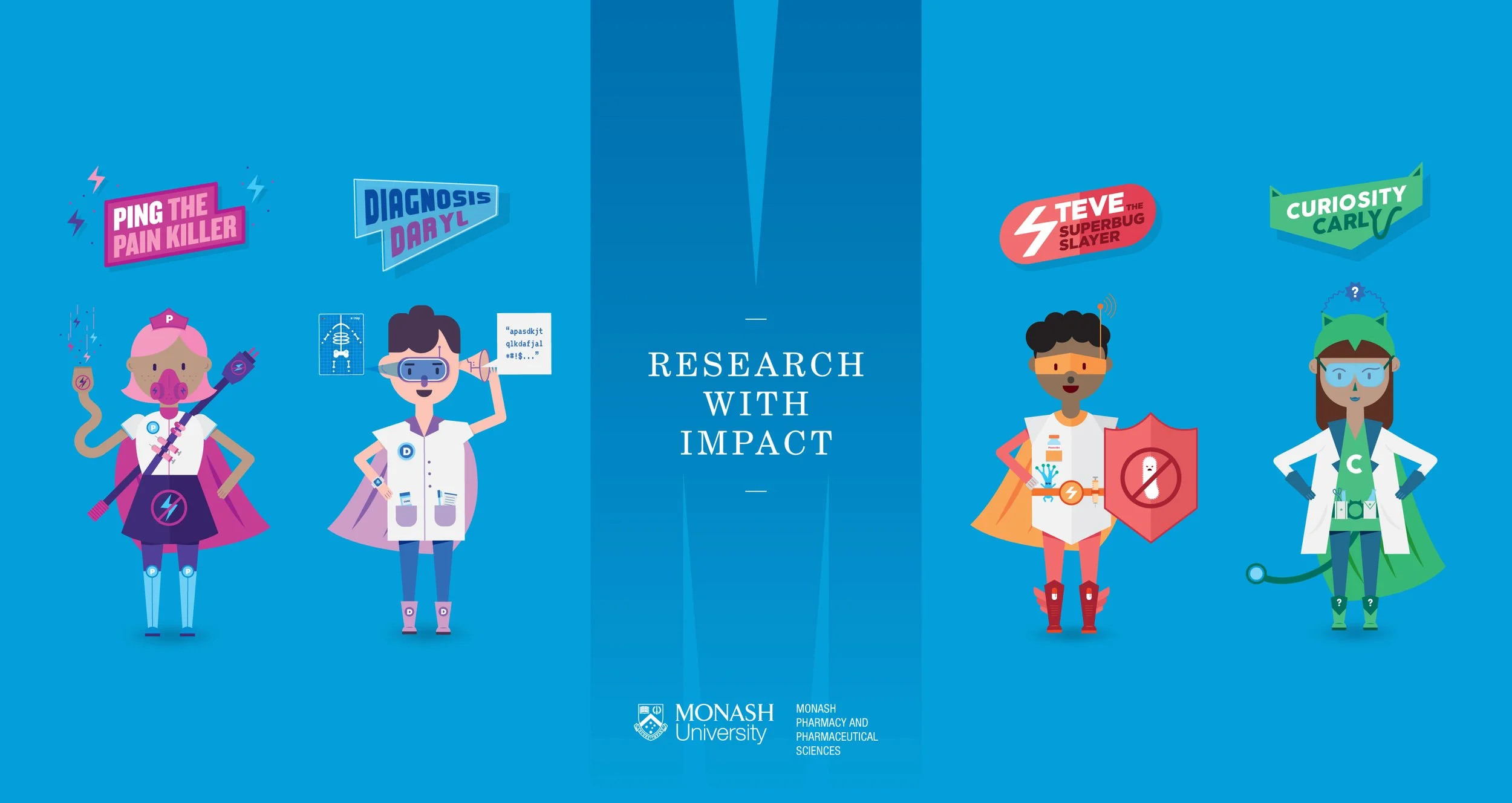 A series of illustrations was created for Monash University’s Faculty of Pharmacy and Pharmaceutical Sciences to educate students on the vital role of pharmacists and researchers, inspiring them to explore careers that improve global healthcare.